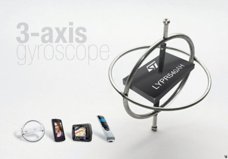 Chíp gyro 3-trục có thể hoạt động với điện cấp từ 2.7V đến 3.6V. Để có độ bền chống các lực cơ, chíp gyro 3-trục cũng trải qua các quá trình sản xuất như hơn 600 triệu cảm biết gia tốc mà hãng ST đã thực hiện thành công bán ngoài thị trường. Ông tổng giám đốc của hãng ST, Benedetto Vigna, nói “Trong năm 2003, hãng ST là hãng đầu tiên cho ra bộ cảm biến đo gia tốc 3-trục kỹ thuật tương tự trong một trong một kiện đơn, và nay chúng tôi cũng là hãng đầu tiên có gyro 3-trục kỹ thuật tương tự.”